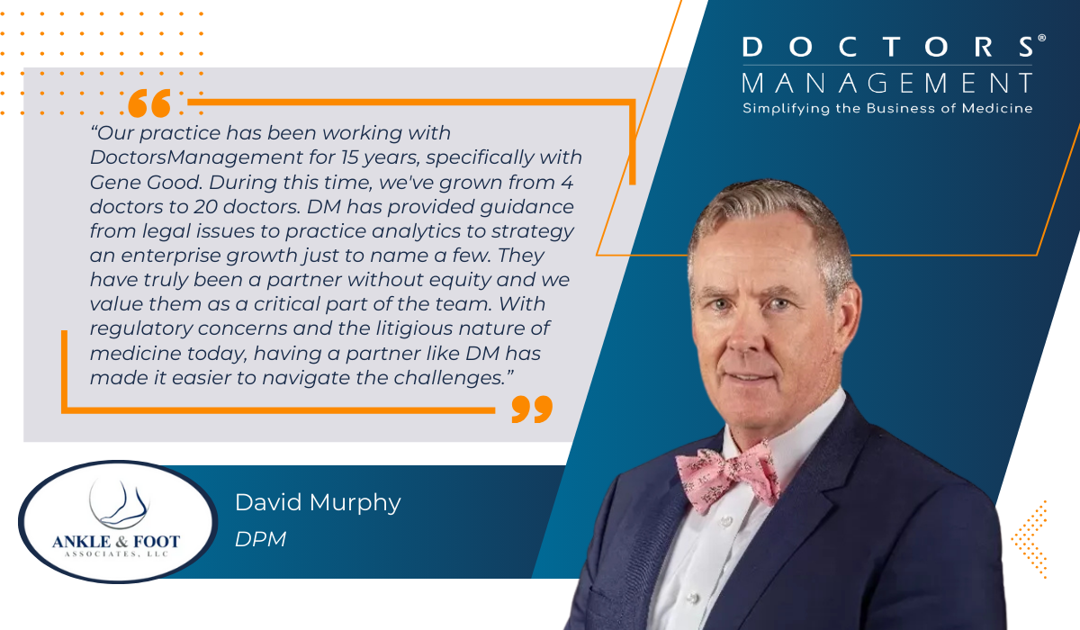 Gene oversees the strategic direction of DoctorsManagement and tries to foster a high-performance culture with a strong emphasis on sustainability. He started at the bottom of the company ladder with his first role being “the driver” for a very successful consultant. Having risen through the ranks of DM, Gene developed a deep understanding of the complexities in managing and growing sustainable healthcare companies. His hands-on training combined with a JD and CPA foundation led to a track record of success for the company and our clients.